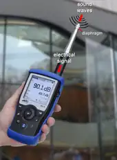 Sound can be measured in the air using a sound level meter, a device consisting of a microphone, an amplifier, and a time meter.[86] Sound level meters can measure noise at different frequencies (usually A- and C-weighted levels).[74] There are two settings for response time constants, fast (time constant = 0.125 seconds, similar to human hearing) or slow (1 second, used for calculating averages over widely varying sound levels).[74] Sound level meters meet the required standards set by the International Electrotechnical Commission (IEC)[87] and in the United States, the American National Standards Institute as type 0, 1, or 2 instruments.[88]