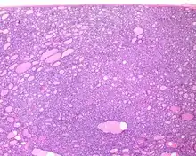 - Nikiforov YE, Seethala RR, Tallini G, Baloch ZW, Basolo F, Thompson LD, Barletta J, Wenig BM, Ghuzlan AA, Kakudo K, Giordano TJ, Alves VA, Khanafshar E, Asa SL, El-Naggar AK, Gooding WE, Hodak SP, Lloyd RV, Maytal G, Mete O, Nikiforova MN, Nosé V, Papotti M, Poller DN, Sadow PM, Tischler AS, Tuttle RM, Wall KB, LiVolsi VA, Randolph GW, Ghossein RA (14 April 2016). "Nomenclature Revision for encapsulated follicular variant of papillary thyroid carcinoma: A Paradigm Shift to Reduce Overtreatment of Indolent Tumors". JAMA Oncol. 2 (8): 1023–9. doi:10.1001/jamaoncol.2016.0386. PMC 5539411. PMID 27078145.