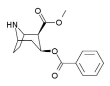 Norcocaine is a minor metabolite of cocaine. It is the only confirmed pharmacologically active metabolite of cocaine,[1] although salicylmethylecgonine is also speculated to be an active metabolite. The local anesthetic potential of norcocaine has been shown to be higher than that of cocaine,[2][3] however cocaine continues to be more widely used. Norcocaine used for research purposes is typically synthesized from cocaine. Several methods for the synthesis have been described.[4][5]