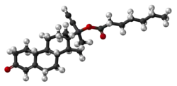 Norethisterone enanthate (NETE), also known as norethindrone enanthate, is a form of hormonal birth control which is used to prevent pregnancy in women.[1][2][3] It is used both as a form of progestogen-only injectable birth control and in combined injectable birth control formulations. It may be used following childbirth, miscarriage, or abortion.[1] The failure rate per year in preventing pregnancy for the progestogen-only formulation is 2 per 100 women.[4] Each dose of this form lasts two months with only up to two doses typically recommended.[5][1]