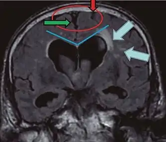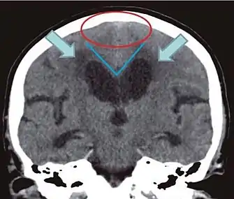 | Callosal angle (blue V) | Acute angle | Obtuse angle |