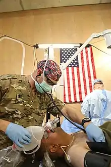 At least one nurse anesthetist was a prisoner of war. Army Nurse anesthetist Annie Mealer endured a three-year imprisonment by the Japanese in the Philippines, and was released in 1945.[47] During the Iraq War, nurse anesthetists provide care at forward positioned medical treatment facilities. In addition, they play a role in the continuing education and training of Department of Defense nurses and technicians in the care of wartime trauma patients.[48]