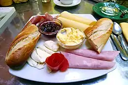 Bread, ham, fruit preserve, and cheese prepared for human consumption