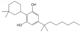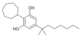 O-1871 is a potent cannabinoid agonist which was invented by Billy R Martin and Raj K Razdan at Organix Inc in 2002. It has a CB1 receptor affinity of 2.0nM and a CB2 receptor affinity of 0.3nM.[1] Structurally, O-1871 is a cyclohexylphenol derivative related to CP 47,497,[2] and so is illegal in some jurisdictions where CP 47,497 and its derivatives are banned. However the 3,3-dimethylcyclohexyl substituent of O-1871 can be replaced by various other groups, producing other potent compounds such as the cycloheptyl derivative O-1656 and the 2-adamantyl derivative O-1660, as well as the corresponding 3,5-dichlorophenyl derivative,[3] which are not cyclohexylphenol derivatives.
