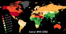 Obesity is a leading preventable cause of death worldwide, with increasing rates in adults and children.[18] In 2015, 600 million adults (12%) and 100 million children were obese in 195 countries.[7] Obesity is more common in women than in men.[1] Today, obesity is stigmatized in most of the world. Conversely, some cultures, past and present, have a favorable view of obesity, seeing it as a symbol of wealth and fertility.[2][19] Nevertheless, in 2013, several medical societies, including the American Medical Association and the American Heart Association, classified obesity as a disease.[20][21][22]