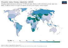 Because of the social stigma of obesity, people who are obese may receive poorer healthcare than people within the normal BMI weight range, potentially contributing to the relationship between obesity and poor health outcomes.[4][5] People who experience weight-related discrimination, irrespective of their actual weight status, similarly have poorer health outcomes than those who do not experience weight-related discrimination.[6] People who are obese are also less likely to seek medical care than people who are not obese,[7] even if the weight gain is caused by medical problems. Peter Muennig, a professor in the Department of Health Policy and Management at Columbia University,[8] has proposed that obesity-associated medical conditions may be caused "not from adiposity alone, but also from the psychological stress induced by the social stigma associated with being obese".[9]