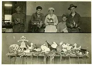 Occupational therapy. Toy making in psychiatric hospital. World War I era.