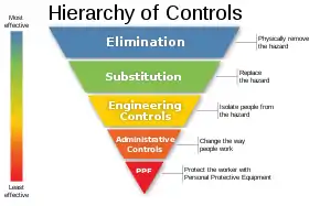 - "CDC - Hierarchy of Controls - NIOSH Workplace Safety and Health Topic". www.cdc.gov. Retrieved 2018-02-23.