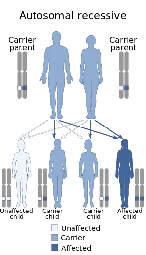 Oguchi disease is an autosomal recessive[2] form of congenital stationary night blindness associated with fundus discoloration and abnormally slow dark adaptation.