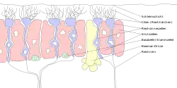 Labels in German. "Zellen" = "cell","riech" = "smell", "Riechnerv" = olfactory nerve, "cillien" = cilia.