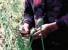 Harvesting the poppy pod.