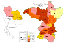 Opisthorchiasis is prevalent where raw cyprinid fishes are a staple of the diet.[19] Prevalence rises with age; children under the age of 5 years are rarely infected by Opisthorchis viverrini. Males may be affected more than females.[20][21] The WHO estimates that foodborne trematodiases (infection by worms or "flukes", mainly Clonorchis, Opisthorchis, Fasciola and Paragonimus species) affect 56 million people worldwide and 750 million are at risk of infection.[22][23] 80 million people are at risk of opisthorchiasis (67 million from infection with Opisthorchis viverrini in Southeast Asia and 13 million from Opisthorchis felineus in Kazakhstan, Russia, and Ukraine).[24][25] In the lower Mekong River basin, the disease is highly endemic, and more so in lowlands,[19] with a prevalence up to 60% in some areas of northeast Thailand. However, estimates using polymerase chain reaction-based diagnostic techniques indicate that prevalence is probably grossly underestimated.[26] In one study from the 1980s, a prevalence of over 90% was found in persons greater than 10 years old in a small village near Khon Kaen in northeast Thailand in the region known as Isan.[27] Sporadic cases have been reported from Malaysia, Singapore, and the Philippines.[23] Although the overall prevalence has declined since initial surveys performed in the 1950s, an increase has occurred since the 1990s in some areas, possibly related to large increases in aquaculture.[25]