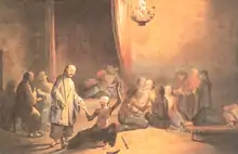 It is important to note that "recreational use" of opium was part of a civilized and mannered ritual, akin to an East Asian tea ceremony, prior to the extensive prohibitions that came later.[44] In places of gathering, often tea shops, or a person's home servings of opium were offered as a form of greeting and politeness. Often served with tea (in China) and with specific and fine utensils and beautifully carved wooden pipes. The wealthier the smoker, the finer and more expensive material used in ceremony.[44] The image of seedy underground, destitute smokers were often generated by anti-opium narratives and became a more accurate image of opium use following the effects of large scale opium prohibition in the 1880s.[44]