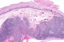 Risk factors include tobacco and alcohol use.[9][10] Those who use both alcohol and tobacco have a 15 times greater risk of oral cancer than those who use neither.[11] Other risk factors include HPV infection,[12] chewing paan,[13] and sun exposure on the lower lip.[14] Oral cancer is a subgroup of head and neck cancers.[6] Diagnosis is made by biopsy of the concerning area, followed by investigation with CT scan, MRI, PET scan, and examination to determine if it has spread to distant parts of the body.