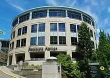 With the Marquam Hill campus running out of room for expansion, beginning in 2003 OHSU announced plans to expand into the South Waterfront District, formerly known as the North Macadam District. The expansion area is along the Willamette River in the South Portland neighborhood to the east of Marquam Hill and south of the city center. The Center for Health & Healing earned LEED Platinum certification in February 2007, becoming the largest health care center in the U.S. to achieve that status. As part of the continued expansion of the South Waterfront, on June 26, 2014, OHSU opened the Collaborative Life Sciences Building (CLSB). The building cost $295 million to construct,[29] and houses OHSU School of Dentistry and Dental Clinics, Portland State University classes and Oregon State University's Doctor of Pharmacy program.[30] In April, 2018, CLSB was renamed to the Joseph E. Robertson, Jr. Collaborative Life Sciences Building (RLSB).[31] As existing surface streets were deemed insufficient to connect the South Waterfront campus to the Marquam Hill campus, the Portland Aerial Tram was built as the primary link between them and opened December 1, 2006. Controversy surrounded the costs of the tram,[32] which nearly quadrupled from initial estimates. Construction of the tram was funded largely by OHSU ($40 million, 70%), with contributions from the city of Portland ($8.5 million, 15%) and developers and landowners in the South Portland neighborhood.[33]