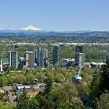 In 2001, OHSU purchased property in what is now known as the South Waterfront neighborhood with intentions to expand its facilities there. After the purchase, OHSU began developing plans with the Portland Office of Transportation to connect this location to its Marquam Hill facilities by way of an aerial tram. Before construction of the tram began in 2005, the project was criticized by residents in the neighborhoods located directly below the projected tram route who believed its construction would result in an invasion of privacy and lower property values. The group No Tram to OHSU argued that OHSU had not sufficiently justified the benefits of the tram, that the tram would not alleviate traffic congestion on Marquam Hill as OHSU claimed, and that the project inappropriately made use of public right of way for private purposes.[46] During the construction phase, the project came under additional public scrutiny amid rising construction and operation costs.[47] The final cost of its construction was $57 million, almost 4 times over its original projected budget. After opening in December 2006, the tram carried its one millionth passenger on October 17, 2007, and its ten millionth rider on January 8, 2014.