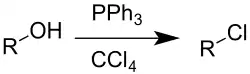 In the laboratory, thionyl chloride is especially convenient, because the byproducts are gaseous. Alternatively, the Appel reaction can be used:
