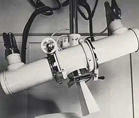 ![]() A 200 kV orthovoltage X-ray tube used for radiation therapy, 1938. Orthovoltage X-ray machines are similar to diagnostic (radiography) X-ray machines, except that higher voltages are used and the X-ray tube is longer, to prevent the high voltages from arcing across the tube.