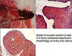 Ovarian torsion. Present in rats.