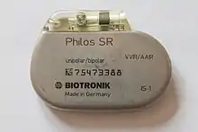 St. Jude single-lead pacemaker with ruler in cm (released in 2005[1][2])