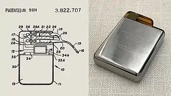 84. US 3822707, Adducci, Anthony J. & Schwalm, Arthur W., "Metal-enclosed cardiac pacer with solid-state power source", published 1974-07-09, issued 1972-04-17, assigned to Cardiac Pacemekers Inc.