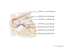 - Atrioventricular node(AVN): 40–60 bpm