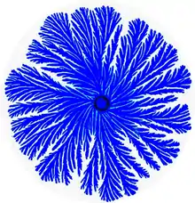 | A colony generated by the Branching (Tip splitting) morphotype bacteria of P. dendritiformis. | |