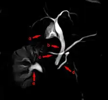 Pancreatic divisum is a congenital anomaly in the anatomy of the ducts of the pancreas in which a single pancreatic duct is not formed, but rather remains as two distinct dorsal and ventral ducts. Most individuals with pancreas divisum remain without symptoms or complications. A minority of people with pancreatic divisum may develop episodes of abdominal pain, nausea or vomiting due to acute or chronic pancreatitis. The presence of pancreas divisum is usually identified with cross sectional diagnostic imaging, such as MRI or computed tomography (CT) imaging. In some cases, endoscopic retrograde cholangiopancreatography (ERCP) is performed, revealing the diagnosis of pancreas divisum. If no symptoms or complications are present, then treatment is not necessary. However, if there is recurrent pancreatitis, then a sphincterotomy of the minor papilla may be indicated.