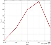 In January 2022, Chinese scientists at the Wuhan University and other institutions reported in a preprint the detection of the closest MERS-CoV relative in bats to date, NeoCoV, and another virus, PDF-2180-CoV, that can efficiently use bats' ACE2 for cell entry. The study, now published in Nature found that one mutation could result in a theoretical 'MERS-CoV-2' that, like SARS-CoV-2, can use humans' ACE2 receptor. The theoretical virus could also have a high mortality burden, since MERS-CoV had a case fatality rate of around 35%.[6] This 'MERS-CoV-2' therefore represents a risk to biosafety and potential zoonotic spillover.[7][8] The study emphasized the need for pathogen/spillover surveillance to further understand any possible threat from related viruses.[9][7] The WHO stated that further study is needed to find out "whether the virus detected in the study will pose a risk for humans".[10]