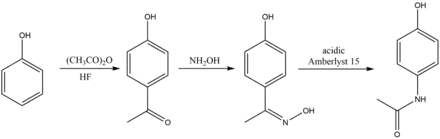 - US patent 4524217, Davenport KG, Hilton CB, "Process for producing N-acyl-hydroxy aromatic amines", published 18 June 1985, assigned to Celanese Corporation