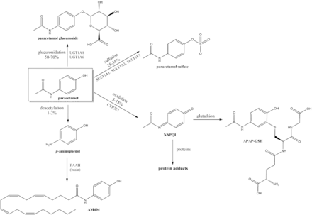 - Mehta S (25 August 2012). "Metabolism of Paracetamol (Acetaminophen), Acetanilide and Phenacetin". PharmaXChange.info. Archived from the original on 28 October 2019. Retrieved 27 October 2019.
