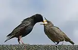 In brood parasitism, the hosts act as parents as they raise the young as their own. Brood parasites include birds in different families such as cowbirds, whydahs, cuckoos, and black-headed ducks. These do not build nests of their own, but leave their eggs in nests of other species. The eggs of some brood parasites mimic those of their hosts, while some cowbird eggs have tough shells, making them hard for the hosts to kill by piercing, both mechanisms implying selection by the hosts against parasitic eggs.[38][51][52] The adult female European cuckoo further mimics a predator, the European sparrowhawk, giving her time to lay her eggs in the host's nest unobserved.[53]