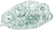 Trophically-transmitted parasites are transmitted by being eaten by a host. They include trematodes (all except schistosomes), cestodes, acanthocephalans, pentastomids, many roundworms, and many protozoa such as Toxoplasma.[21] They have complex life cycles involving hosts of two or more species. In their juvenile stages they infect and often encyst in the intermediate host. When the intermediate-host animal is eaten by a predator, the definitive host, the parasite survives the digestion process and matures into an adult; some live as intestinal parasites. Many trophically transmitted parasites modify the behaviour of their intermediate hosts, increasing their chances of being eaten by a predator. As with directly transmitted parasites, the distribution of trophically transmitted parasites among host individuals is aggregated.[21] Coinfection by multiple parasites is common.[26] Autoinfection, where (by exception) the whole of the parasite's life cycle takes place in a single primary host, can sometimes occur in helminths such as Strongyloides stercoralis.[27]