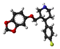 Paroxetine, sold under the brand names Paxil and Seroxat among others, is an antidepressant of the selective serotonin reuptake inhibitor (SSRI) class.[5] It is used to treat major depressive disorder, obsessive-compulsive disorder, panic disorder, social anxiety disorder, post-traumatic stress disorder, generalized anxiety disorder, and premenstrual dysphoric disorder.[5] It has also been used in the treatment of premature ejaculation and hot flashes due to menopause.[5][6] It is taken by mouth.[5]