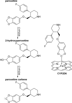 - Jornil J, Jensen KG, Larsen F, Linnet K (March 2010). "Identification of cytochrome P450 isoforms involved in the metabolism of paroxetine and estimation of their importance for human paroxetine metabolism using a population-based simulator". Drug Metabolism and Disposition. 38 (3): 376–385. doi:10.1124/dmd.109.030551. PMID 20007670. S2CID 1795852.