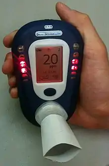 Carbon monoxide monitored via breath is also a reliable biomarker of secondhand smoke exposure as well as tobacco use. With high sensitivity and specificity, it not only provides an accurate measure, but the test is also non-invasive, highly reproducible, and low in cost. Breath CO monitoring measures the concentration of CO in an exhalation in parts per million, and this can be directly correlated to the blood CO concentration (carboxyhemoglobin).[120] Breath CO monitors can also be used by emergency services to identify patients who are suspected of having CO poisoning.