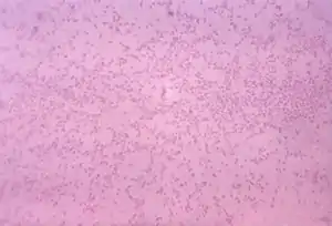 Pasteurella multocida (subspecies P. m. septica and P. m. multocida) is carried in the mouth and respiratory tract of various animals, including pigs.[2] It is a small, Gram-negative bacillus with bipolar staining by Wayson stain. In animals, it can originate in fulminant septicaemia (chicken cholera), but is also a common commensal.