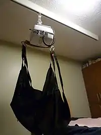 Another kind of sling lift, which is called a ceiling lift, can be permanently installed on the ceiling of a room in order to save space.[4]