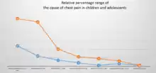Chest pain in children is the pain felt in the chest by infants, children and adolescents. In most cases the pain is not associated with the heart. It is primarily identified by the observance or report of pain by the infant, child or adolescent by reports of distress by parents or caregivers. Chest pain is not uncommon in children. Many children are seen in ambulatory clinics, emergency departments and hospitals and cardiology clinics. Most often there is a benign cause for the pain for most children. Some have conditions that are serious and possibly life-threatening. Chest pain in pediatric patients requires careful physical examination and a detailed history that would indicate the possibility of a serious cause. Studies of pediatric chest pain are sparse. It has been difficult to create evidence-based guidelines for evaluation.[1]