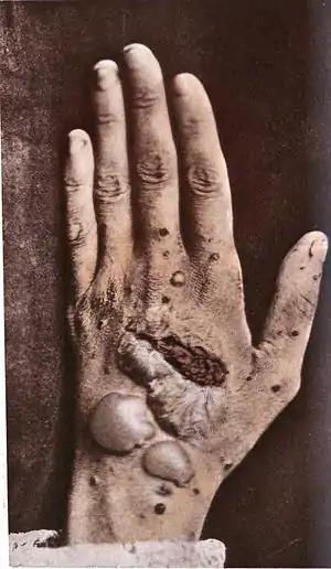 Originally, the cause of this disease was unknown, and "pemphigus" was used to refer to any blistering disease of the skin and mucosa. In 1964, researchers found that the blood of patients with pemphigus contained antibodies to the layers of skin that separate to form the blisters.[4][5] In 1971, an article investigating the autoimmune nature of this disease was published.[6][7]
