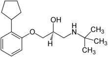 Penbutolol (brand names Levatol, Levatolol, Lobeta, Paginol, Hostabloc, Betapressin) is a medication in the class of beta blockers, used in the treatment of high blood pressure.[1] Penbutolol is able to bind to both beta-1 adrenergic receptors and beta-2 adrenergic receptors (the two subtypes), thus making it a non-selective β blocker.[2]: Table 10–2, p 252 Penbutolol is a sympathomimetic drug with properties allowing it to act as a partial agonist at β adrenergic receptors.[3]