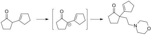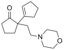 Pentethylcyclanone can be prepared by alkylation of the anion of the self-condensation product of cyclopentanone with N-(2-chloroethyl)-morpholine.[1]