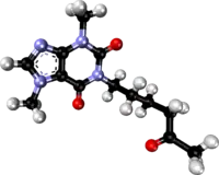 Pentoxifylline, also known as oxpentifylline, is a xanthine derivative used as a drug to treat muscle pain in people with peripheral artery disease.[4] It is generic and sold under many brand names worldwide.[1]