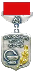People's Doctor of the USSR (Russian: Народный врач СССР) was an honorary title granted to doctors of the Soviet Union; it was established on 25 October 1977 by Leonid Brezhnev and its creation was officialized on the n°44/1977 issue of Supreme Soviet's official journal. Its regulation was later modified and completed by the Supreme Soviet's decree of 22 August 1988.