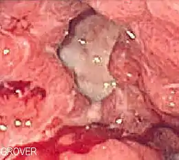 • Gastrointestinal bleeding is the most common complication. Sudden large bleeding can be life-threatening.[18][19] It is associated with 5% to 10% death rate.[14]