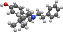Effects of phenazocine include analgesia and euphoria, also may include dysphoria and hallucinations at high doses, most likely due to action at κ-opioid and σ receptors.[2] Phenazocine appears to be a much stronger analgesic with fewer side effects than pentazocine, probably due to a more favorable μ/κ binding ratio. Phenazocine is a much more potent analgesic than pentazocine and other drugs in the benzomorphan series, most probably due to the presence of an N-phenethyl substitution, which is known to boost μ-opioid activity in many classes of opioid analgesics.[3] Also, it does not cause spasm of the sphincter of Oddi, making it more suitable than morphine for the treatment of biliary or pancreatic pain.[4]