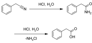 This compound may be prepared by the hydrolysis of benzyl cyanide:[4][5]