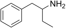 Phenylisobutylamine, also known as α-ethylphenethylamine, Butanphenamine, B or AEPEA,[1] is a stimulant drug of the phenethylamine class. It is a higher homologue of amphetamine, differing from amphetamine's molecular structure only by the substitution of the methyl group at the alpha position of the side chain with an ethyl group. Compared to amphetamine, phenylisobutylamine has strongly reduced dopaminergic effects, and instead acts as a selective norepinephrine releasing agent. The dextroisomer of phenylisobutylamine partially substitutes for dextroamphetamine in rats.[1]