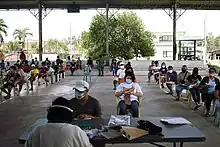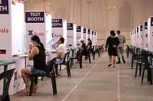 As part of the national government's efforts to conduct mass testing, it began setting up "mega swabbing centers" in May 2020 by repurposing various existing facilities. The first of such facilities opened at the Palacio de Manila along Roxas Boulevard on May 5. These facilities use reverse transcriptase polymerase chain reaction (RT-PCR) kits.[38] The facilities are meant to prioritize the testing of around 25,000 overseas Filipino worker repatriates.[39] Two more facilities opened: at the Enderun Colleges in Taguig and the Mall of Asia Arena in Pasay[39]