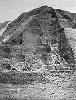 Black phosphorus is the least reactive allotrope and the thermodynamically stable form below 550 °C (1,022 °F). It is also known as β-metallic phosphorus and has a structure somewhat resembling that of graphite.[23][24] It is obtained by heating white phosphorus under high pressures (about 12,000 standard atmospheres or 1.2 gigapascals). It can also be produced at ambient conditions using metal salts, e.g. mercury, as catalysts.[25] In appearance, properties, and structure, it resembles graphite, being black and flaky, a conductor of electricity, and has puckered sheets of linked atoms.[26]